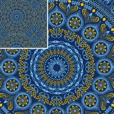 Experience the beauty of traditional prints with this authentic 3 Cats shwe shwe fabric, crafted from pure cotton. Known for its distinct starch coating and vibrant, complex patterns, this textile is a staple for creating striking garments, accessories, and culturally rich décor. Pre-washing is essential to soften the material and set its intense colours, yielding a beautiful, long-lasting fabric.